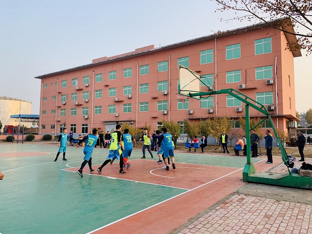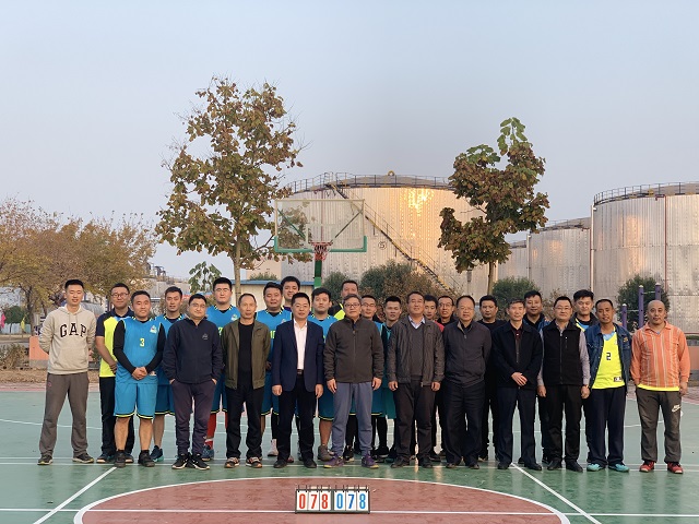 11月9日下午,公司邀請山東高速儲運公司總經理崔若賓一行來到桓臺加工廠,舉行了一場籃球友誼賽。公司總經理范金成、副總經理(兼加工廠廠長)張進等接待了崔總一行,并一同觀看了比賽。